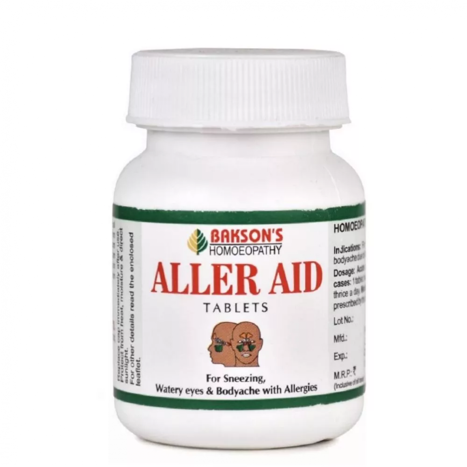 Bakson's Aller Aid Tablet are homoeopathic tablet for allergies that provide relief from hay fever without any side effects. These tablets for allergies cause no drowsiness or disturbance in daily routine. Aller Aid tablets are helpful against the runny nose, sneezing, watery eyes, sinus congestion (Sinusitis), fever and body ache due to allergies and hay fever.