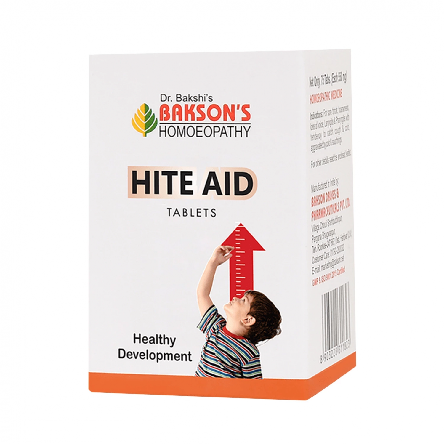 Bakson's Hite Aid Tablet is a homoeopathic remedy for enhancing height in children. This homoeopathic medicine for height growth is effective in cases of delayed growth and tardy development. It also helps in better assimilation and assists growth and development.