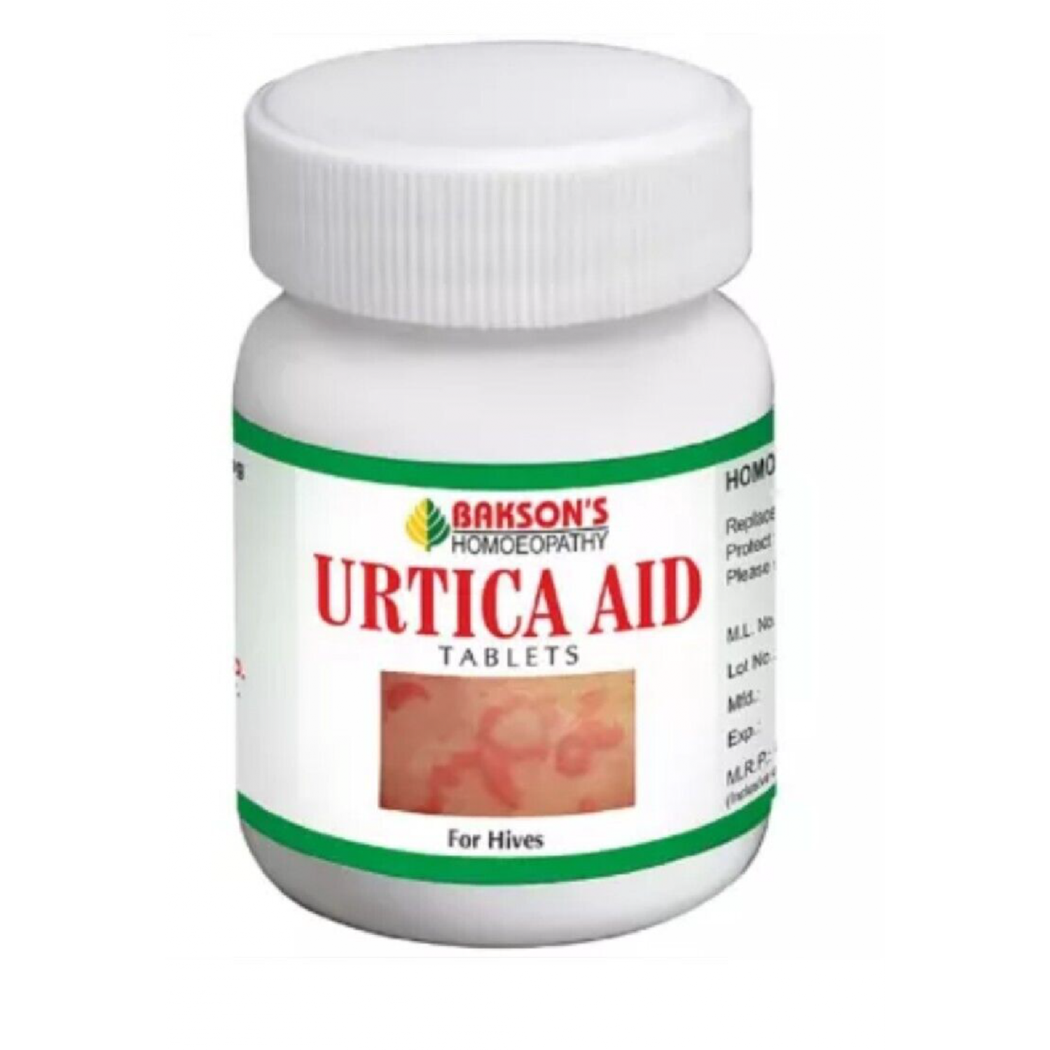 Bakson's Urtica Aid Tablet helps relieve intolerable itching, stinging pains of hives/urticaria and symptoms of Angioedema besides fighting ill effects of suppressed Urticaria.